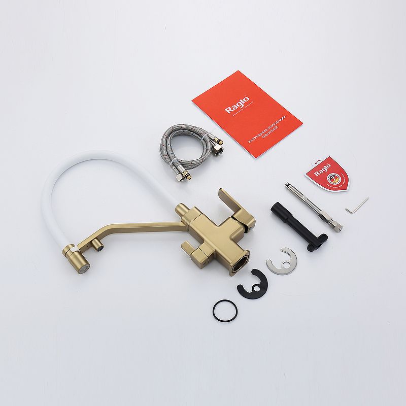Смеситель для кухни Raglo R85.62.03 с подключением фильтра золотой сатин купить