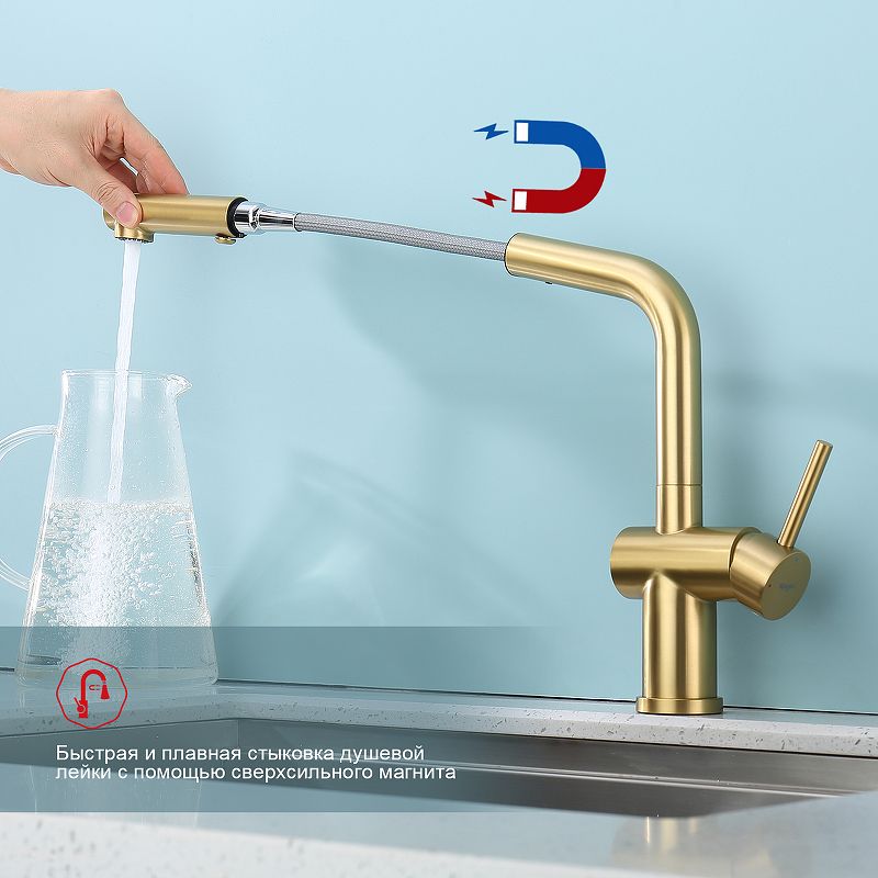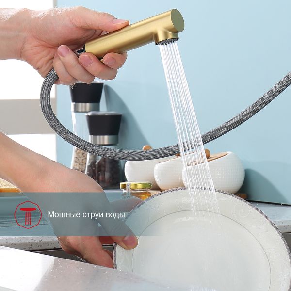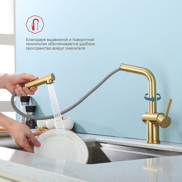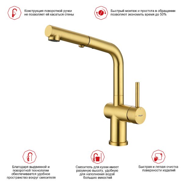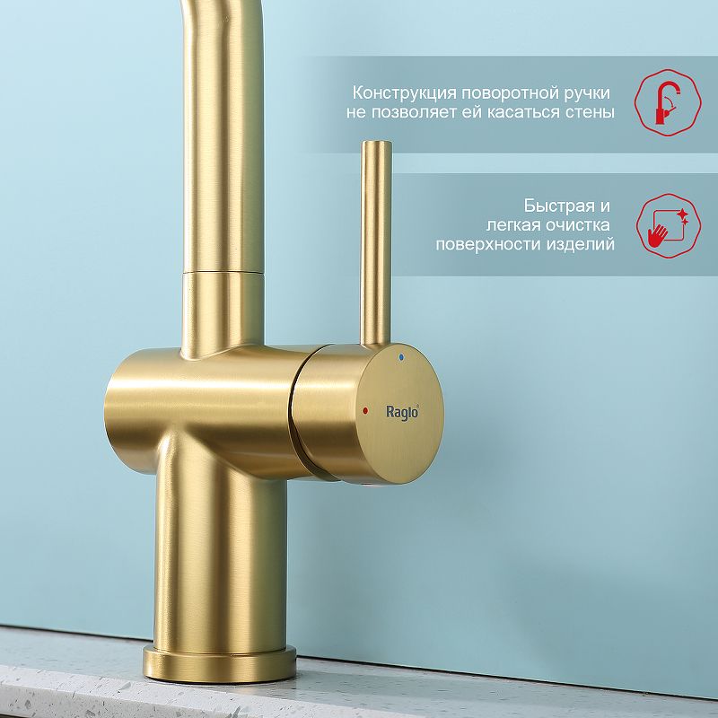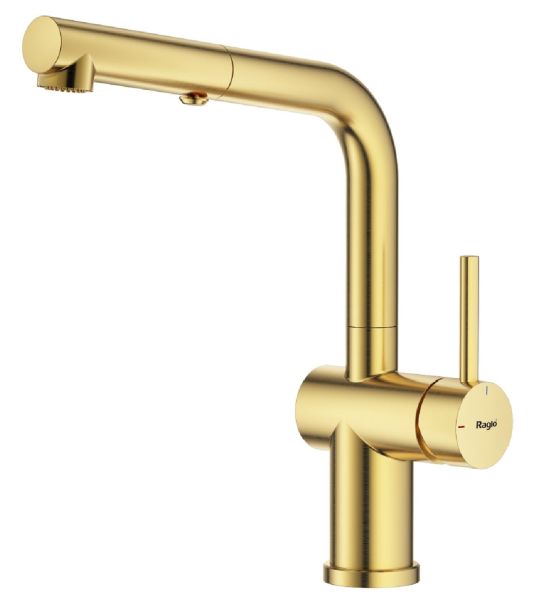 Смеситель для кухни Raglo R86.49.03 с выдвижным изливом золотой сатин