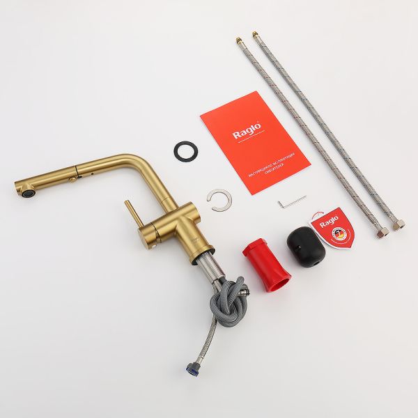 Смеситель для кухни с выдвижным изливом. Кухонные смесители торговой марки RAGLO – это оригинальность и уют для каждого дома. Кран выполнен из высококачественных материалов, что гарантирует его долговечность и надежность. Эта сантехника отличается полезным функционалом, экологичными решениями, оригинальным стилем и легкостью монтажа. Поворотный излив позволяет с большим удобством пользоваться им на кухне. Оснащен гибкой системой подключения, что облегчает его монтаж и установку. Встроенный аэратор эффективно фильтрует примеси и уменьшает шум от импульсов воды. Гладкая внутренняя стенка обеспечивает мягкий поток воды. Высококлассная технология делает поверхность яркой и блестящей. Подходит к кухонным мойкам практически любых размеров и форм.