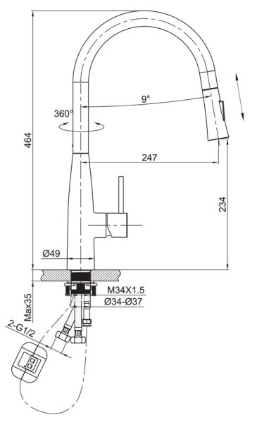 Смеситель для кухни Raiber premium, коллекция Graceful