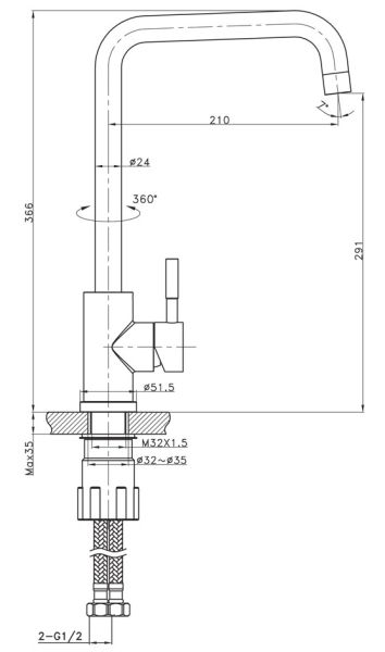 Смеситель для кухни Raiber Graceful RPB-013 чёрный матовый