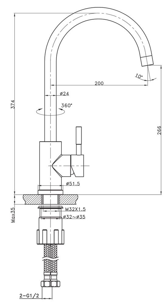 • Высота смесителя: