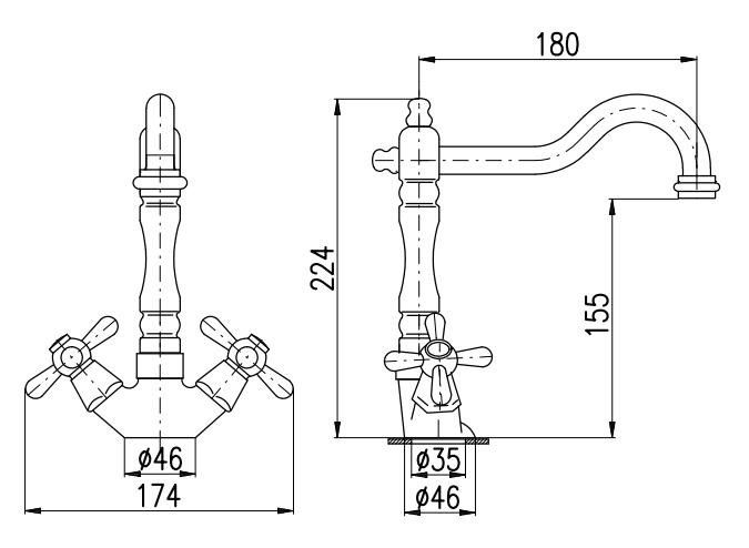 • Высота смесителя: