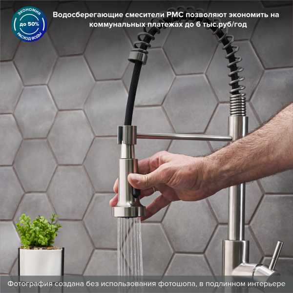 Одноручковый смеситель для кухни из нержавеющей стали с гибким изливом прост и удобен в использовании. При производстве смесителей ТМ РМС используются только высококачественные материалы.