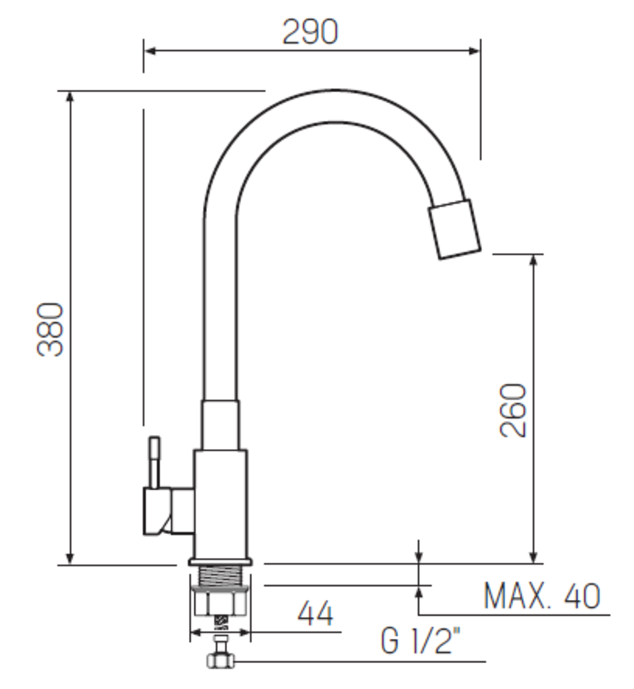 Одноручковый смеситель для кухни из нержавеющей стали с гибким изливом прост и удобен в использовании.