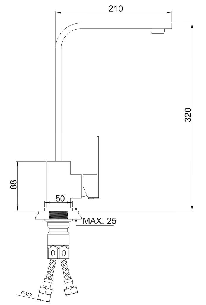 • Высота смесителя: