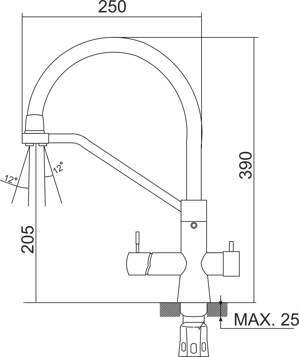 Смеситель для кухни с переключением фильтра для питьевой воды с гибким изливом это не только стилистическое, но и функциональное решение для оснащения кухни. При производстве смесителей ТМ РМС используются только высококачественные материалы. Смесители серии SUS127 выполнены из нержавеющей стали, что является гарантией качества и долговечности, устойчивы к царапинам и перепадам температур, экологичны и безопасны для вашего здоровья, Поверхность не потеряет со временем свой роскошный вид, а уход за ней сводится к протиранию мягкой салфеткой. Установка смесителя крайне проста. Смесители РМС это сертифицированный продукт с 7-летней гарантией. Гибкая подводка идет в комплекте.