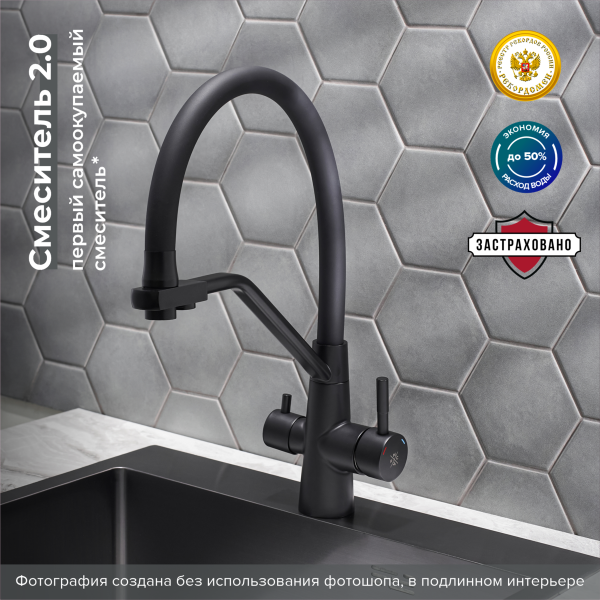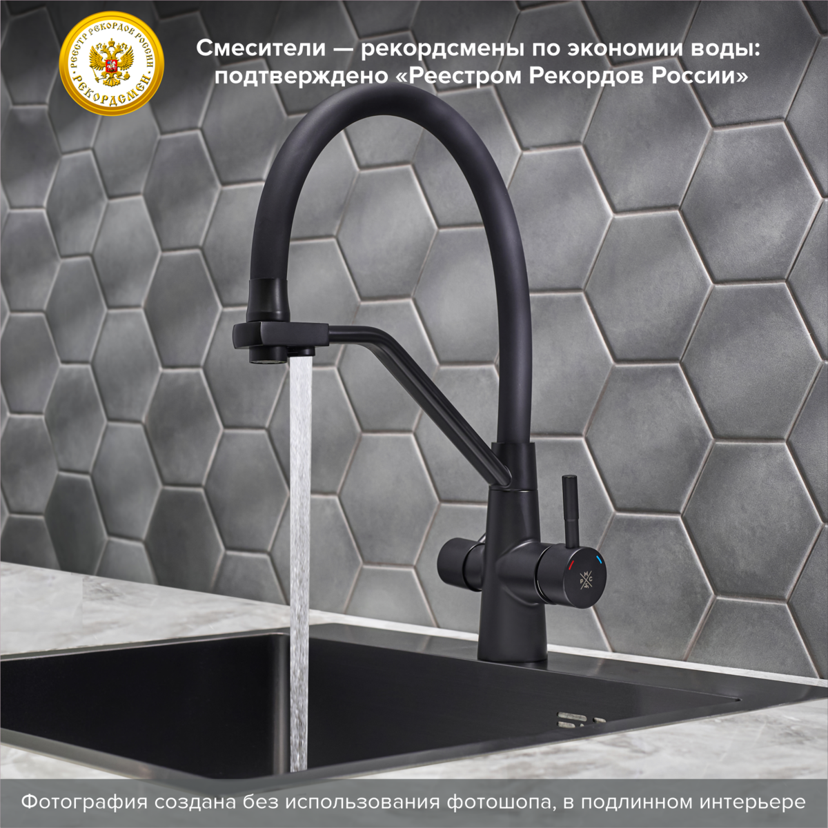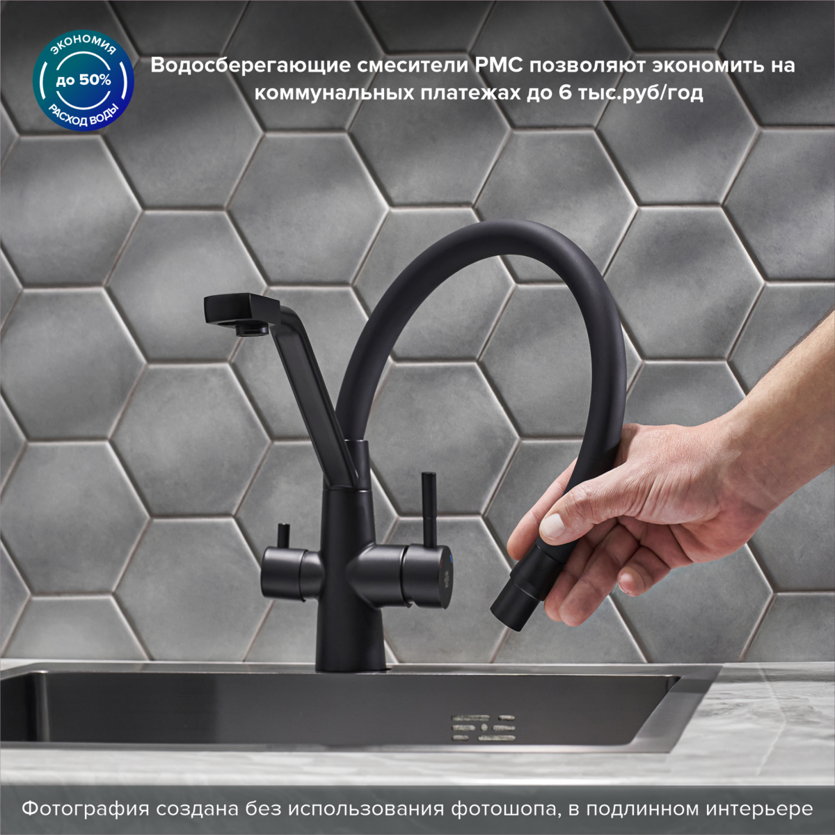 Смеситель для кухни РМС SUS127TBL-016F-015 с подключением фильтра чёрный купить