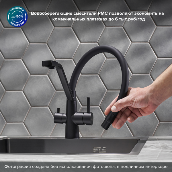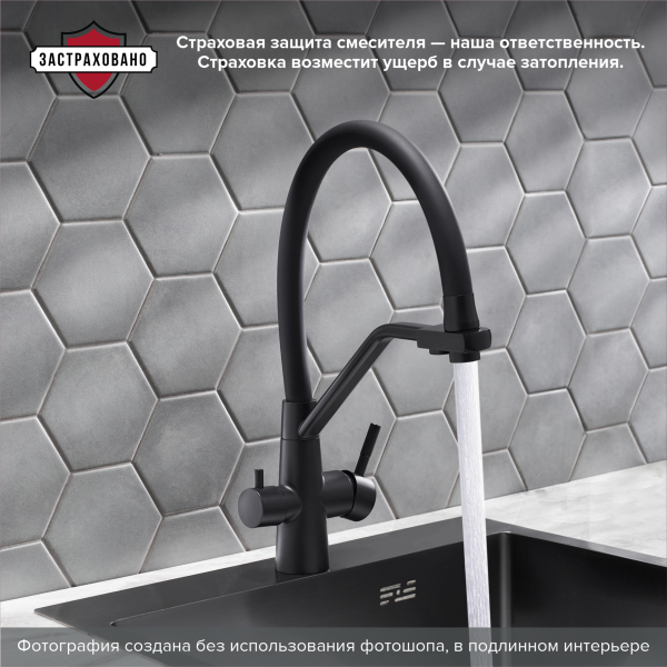 Смеситель для кухни РМС SUS127TBL-016F-015 с подключением фильтра чёрный