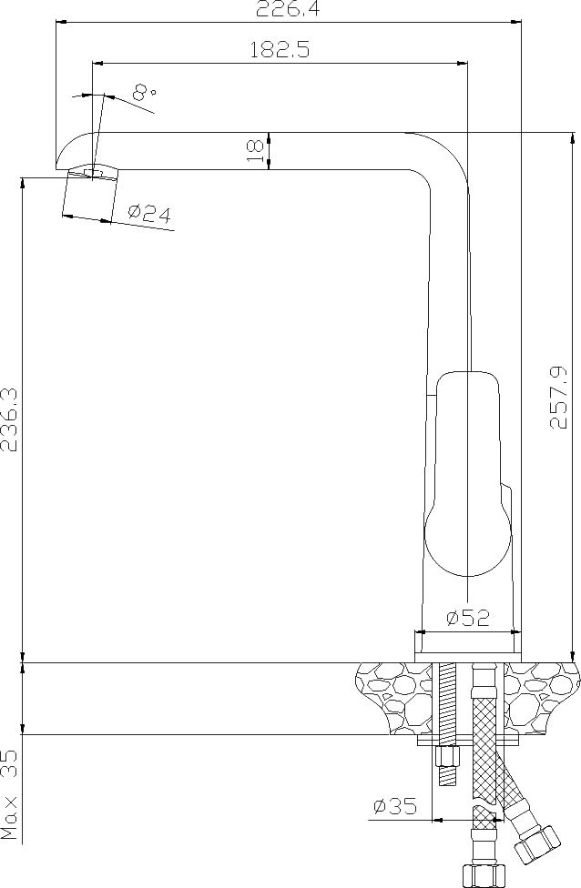 • Высота смесителя: