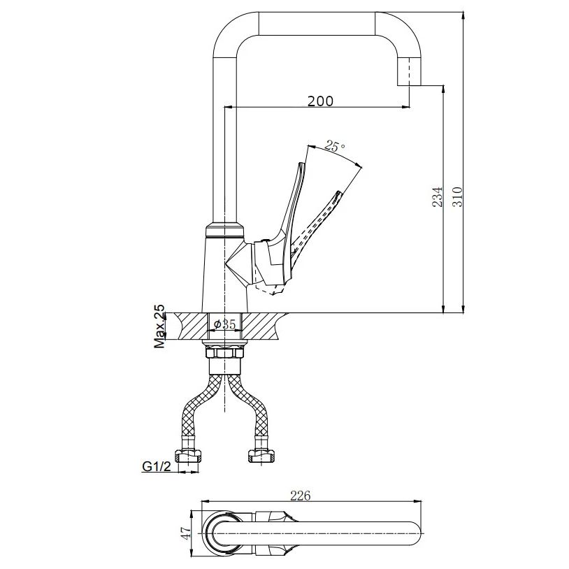 Смеситель для кухни RUSH арт. JA0735-23 с поворотным изливом из коллекции Jawa с металлической ручкой, изготовлен из высококачественной латуни и имеет рычажное управление. В смеситель установлен картридж D-35 с керамическими пластинами. Высота смесителя 310 мм. Излив поворотный 200 мм. Высота излива до аэратора 234 мм. Аэратор изготовлен из пластика с нержавеющим корпусом. В комплекте универсальная присоединительная группа для установки на горизонтальную поверхность, гибкая подводка с латунными гайками 40 см - 2шт, фум-лента, индивидуальный пакет, паспорт, гарантийный талон.