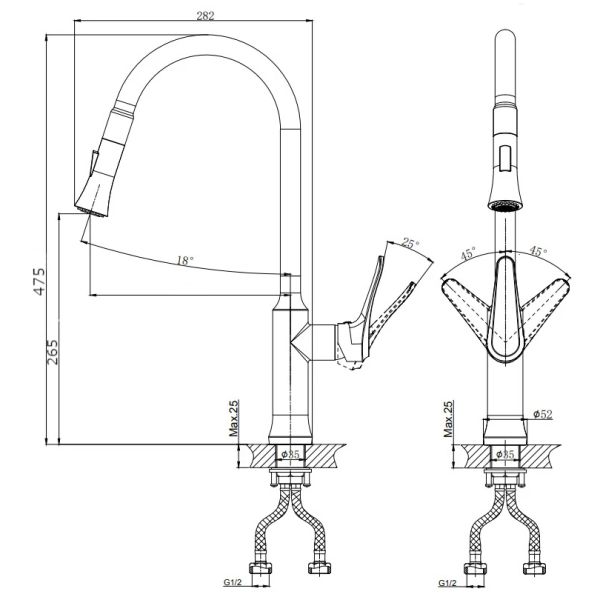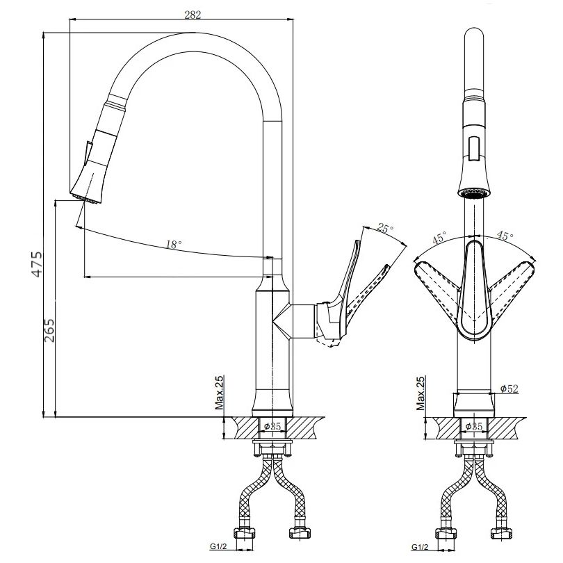 Смеситель для кухни RUSH арт. JA0735-24 с поворотным изливом и вытяжной лейкой из коллекции Jawa с металлической ручкой, изготовлен из высококачественной латуни и имеет рычажное управление. В смеситель установлен картридж D-35 с керамическими пластинами. Высота смесителя 486 мм. Излив поворотный 274 мм. Высота излива до аэратора 238 мм. Аэратор изготовлен из пластика с нержавеющим корпусом, угол наклона аэратора-18гр. В комплекте универсальная присоединительная группа для установки на горизонтальную поверхность, гибкая подводка с латунными гайками 40 см - 2шт, фум-лента, индивидуальный пакет, паспорт, гарантийный талон.