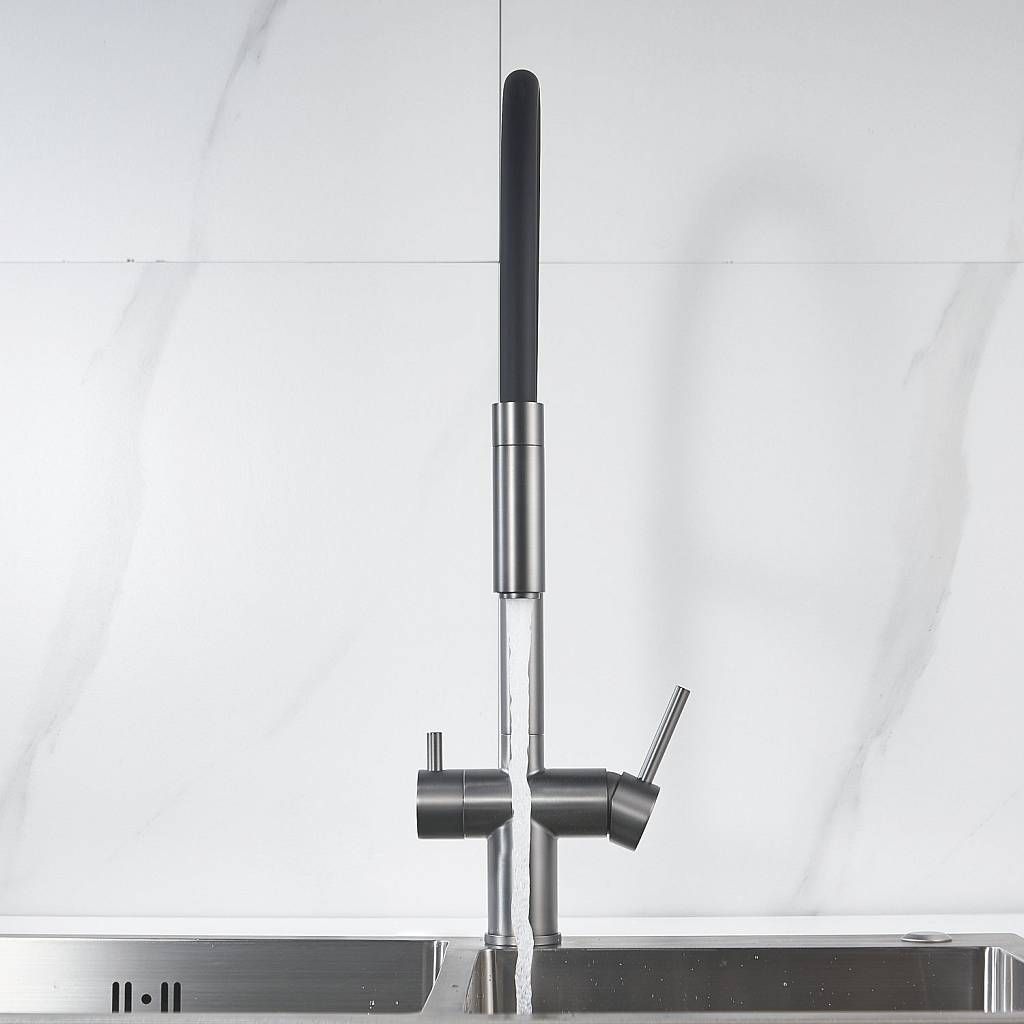 Смеситель для кухни с гибким изливом и подключением фильтра Maretti Calabria CA31RGF11, оружейная сталь купить