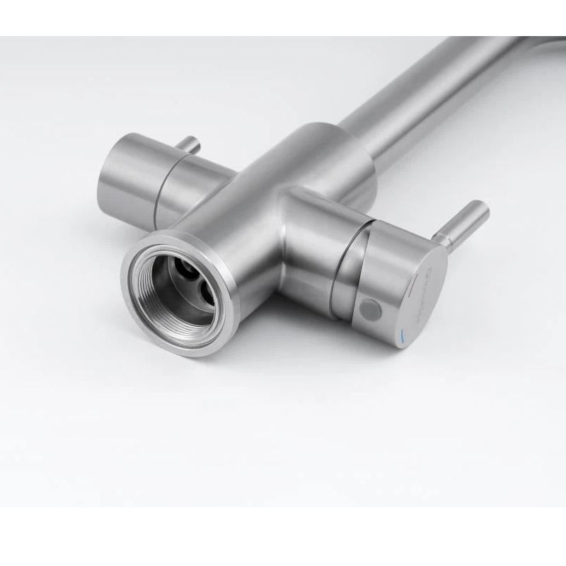 Лаконичный дизайн и материал из нержавеющей стали SUS 304 обеспечивают надежность и долговечность. Смеситель для кухни Knotlor STREAMLINE SS-08 - это идеальное сочетание стиля, функциональности и надежности. Его сатиновый цвет и поворотный излив гармонично впишутся в интерьер любой кухни. Материал изготовления - высококачественная нержавеющая сталь - гарантирует прочность и долговечность смесителя. Встроенный канал для питьевой воды облегчает процесс фильтрации и подачи чистой воды. Теперь у вас всегда будет доступ к чистой и свежей воде прямо из вашей мойки. Отдельный рычаг для подачи чистой воды от фильтра: подключается через отдельный шланг к системе фильтрации водопроводной воды, например марки Гейзер, Барьер и другие. Фильтр приобретается отдельно. Благодаря высокому корпусу и немаркому покрытию, смеситель удобен в использовании и прост в уходе. Высота крана для кухни Knotlor SS-08 позволяет легко наполнять большие кастрюли, высокие вазы, а также мыть посуду при большой заполненности мойки. Обновите вашу кухню со смесителем для кухни с подключением фильтра Knotlor STREAMLINE SS-08!