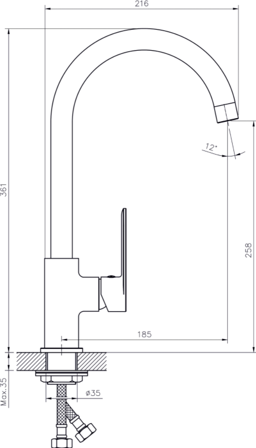 • Высота смесителя:
