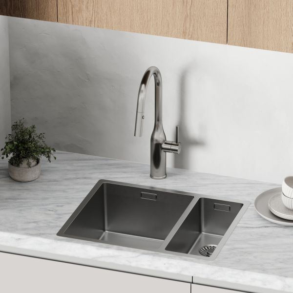 Смеситель для кухни SANCOS Grand c вытяжным и поворотным изливом, цвет нержавеющая сталь, арт. SC4002BNGС возможностью регулировки температуры водыАэратор, гибкая подводка, ключ и крепления для монтажа, ключ для обслуживания аэратора