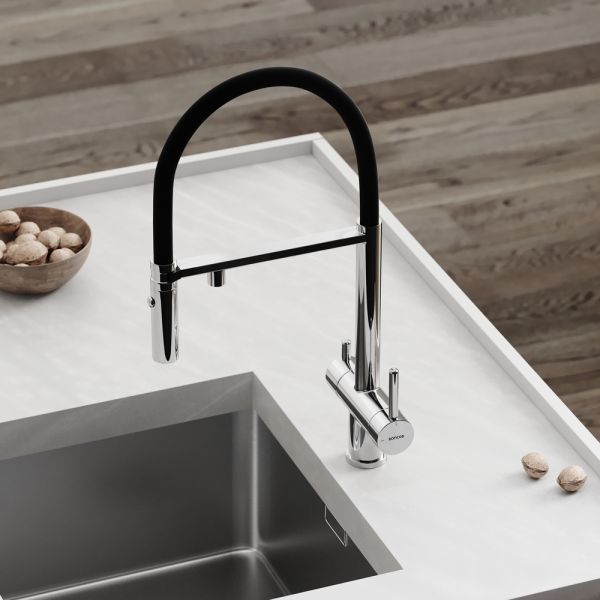 Смеситель для кухни SANCOS Imola с гибким изливом и возможностью подключения фильтра для воды, цвет хром, арт. SC4010CHФункция "Холодный старт" - при включении смесителя активируется холодной поток, для экономии горячей водыАэратор, гибкая подводка, ключ и крепления для монтажа