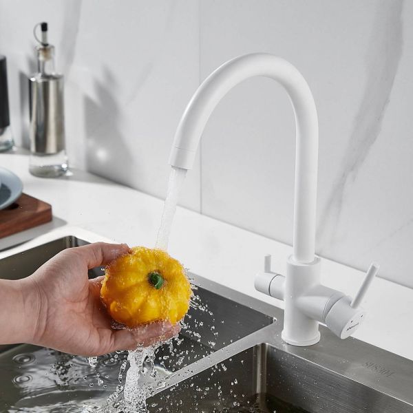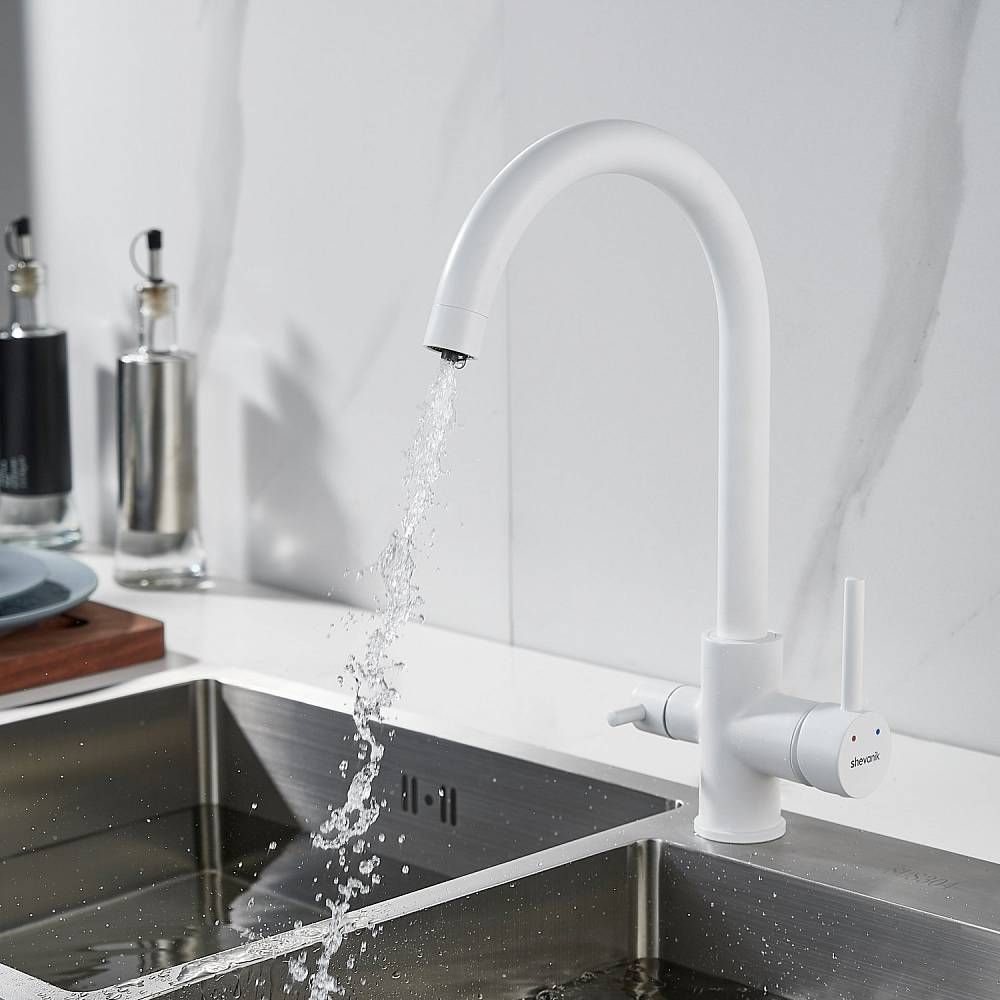 Смеситель для кухни Shevanik S128C с подключением фильтра белый купить