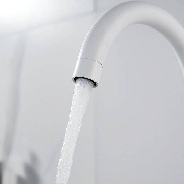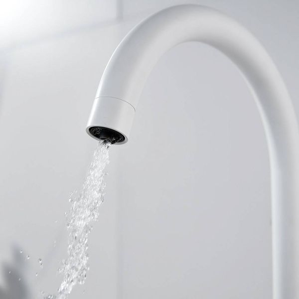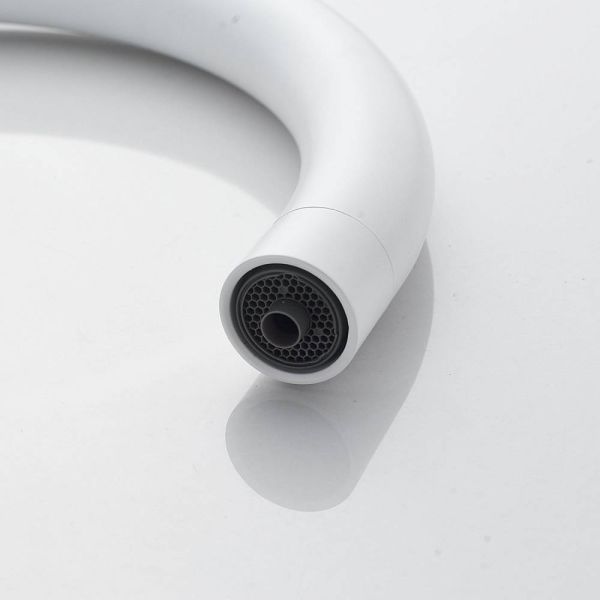 Смеситель для кухни Shevanik S128C - идеальное решение для вашей кухни. Благодаря классическому матовому белому цвету и высокому поворотному изливу, он гармонично впишется в любой интерьер.