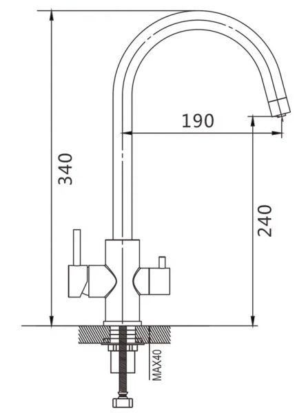 Покрытие смесителя не маркое, на нем не остаются следы от пальцев и капель воды. Благодаря высокому корпусу, смеситель обеспечивает комфорт при мытье посуды и продуктов, а также при наполнении больших емкостей.