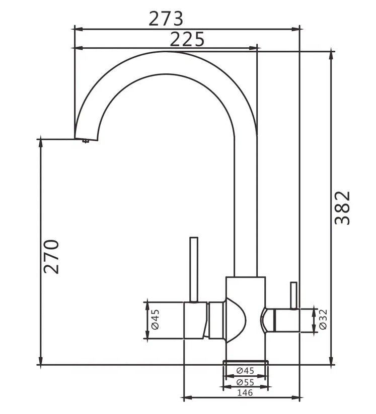 Смеситель для кухни с подключением фильтра Shevanik S168B, сатин.Управление: рычажное.Вращение излива: да.Выдвижной излив: нет.Гибкий излив: нет.Высота:38,2.