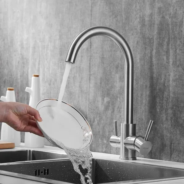 Смеситель для кухни Shevanik S168B с подключением фильтра сатин