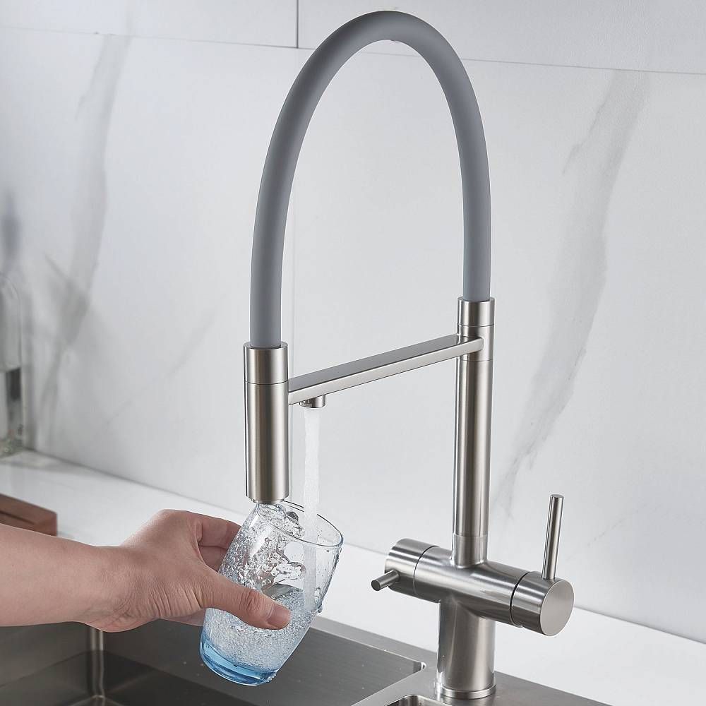 Смеситель для кухни Shevanik S178L с подключением фильтра сатин купить