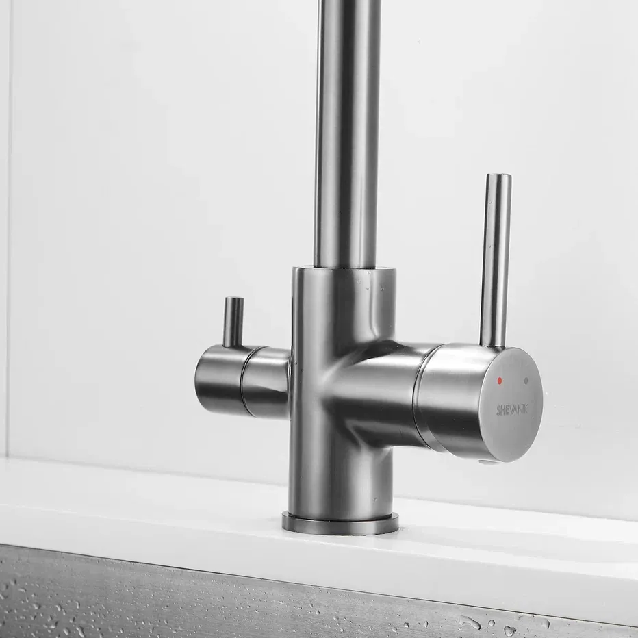 Смеситель для кухни Shevanik S228T с подключением фильтра оружейная сталь