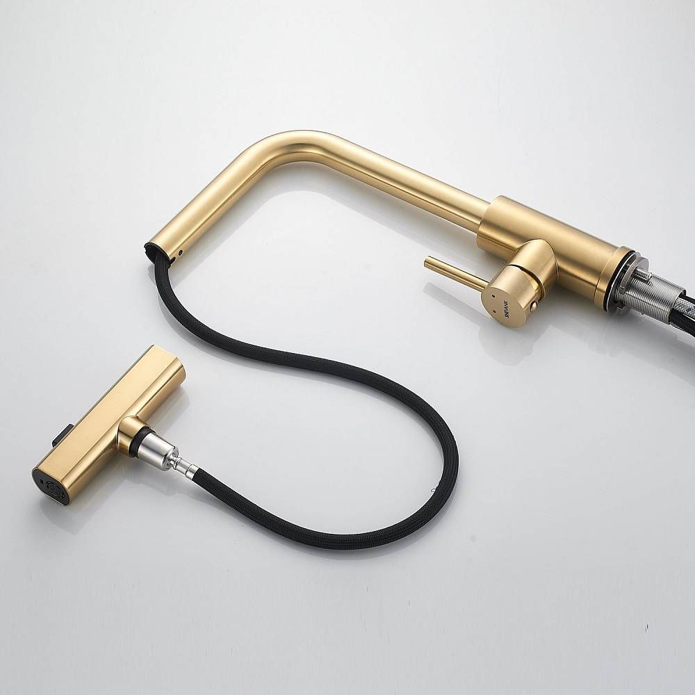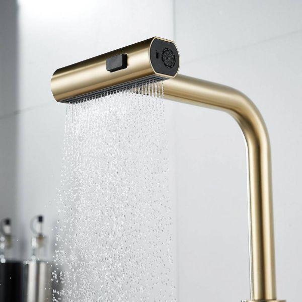 Смеситель для кухни Shevanik S263G с мультифункциональным изливом золотой сатин купить