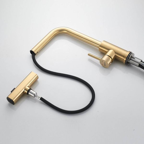Смеситель для кухни Shevanik S263G с мультифункциональным изливом золотой сатин