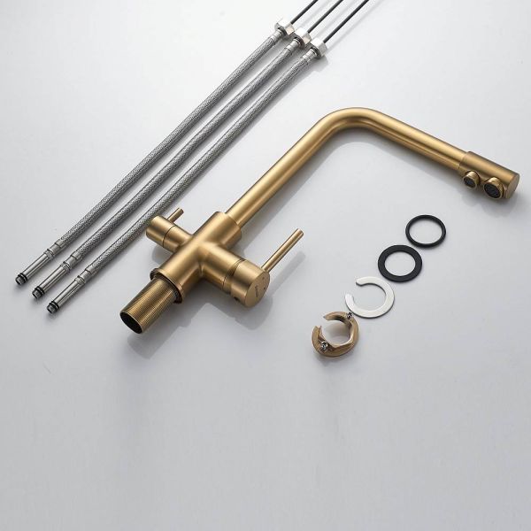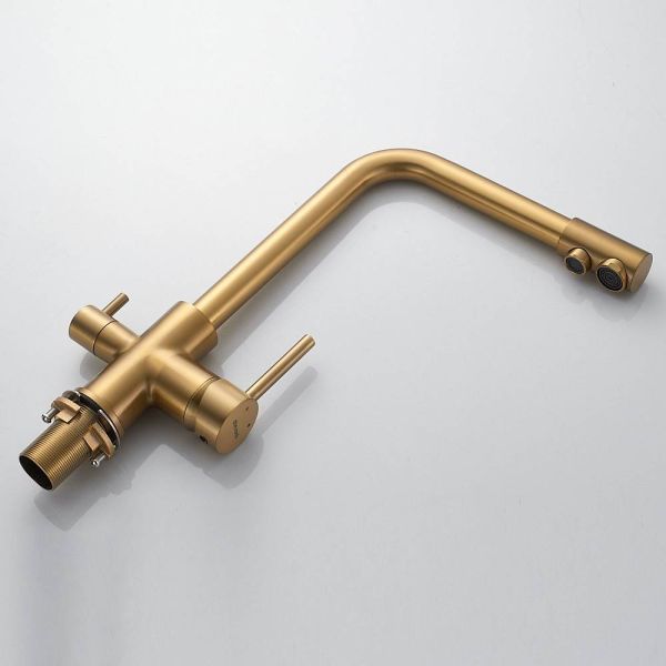 Смеситель для кухни Shevanik S328G с подключением фильтра золотой сатин