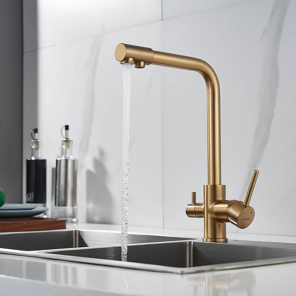 Смеситель для кухни Shevanik S328G с подключением фильтра золотой сатин купить