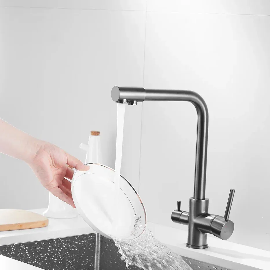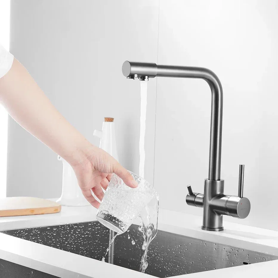 Смеситель для кухни Shevanik S328T с подключением фильтра оружейная сталь купить