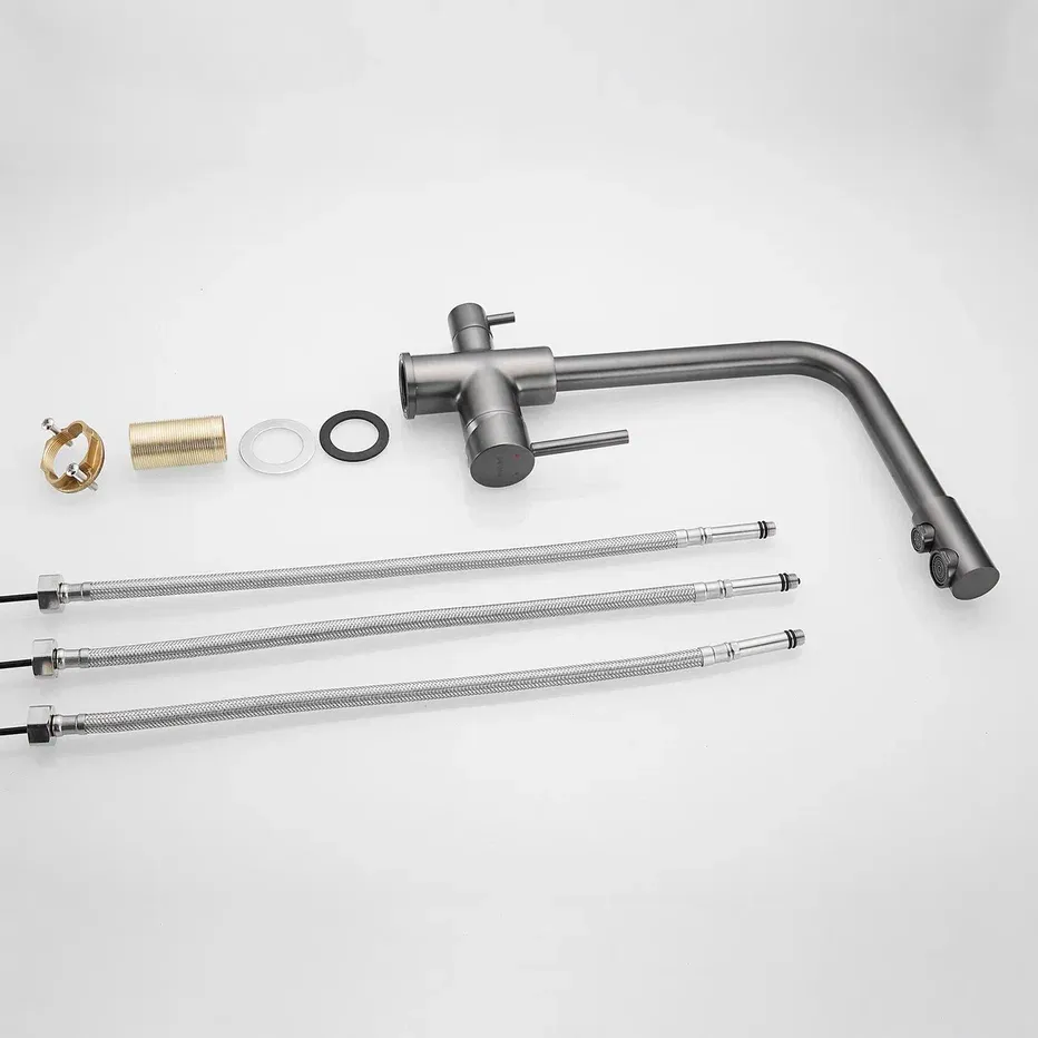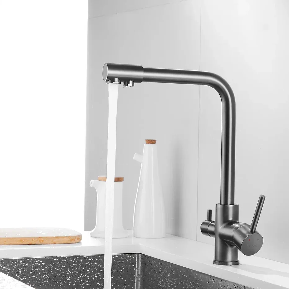 Смеситель для кухни Shevanik S328T с подключением фильтра оружейная сталь