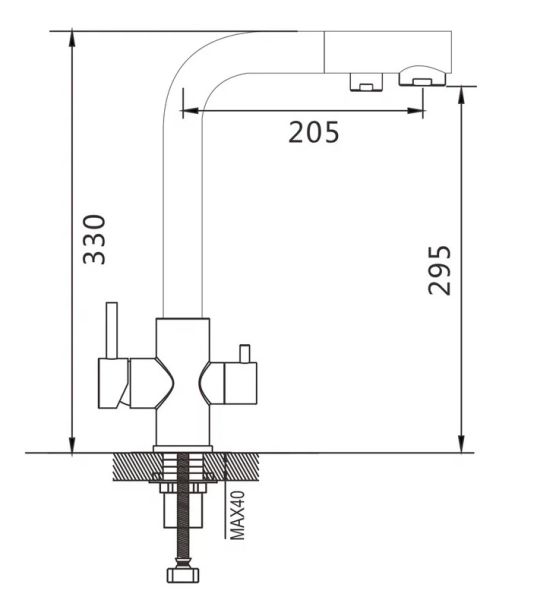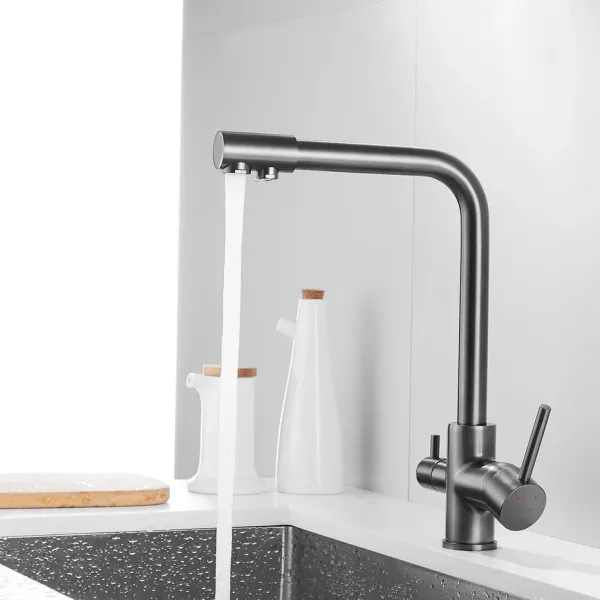 Смеситель для кухни с подключением фильтра Shevanik S328T, оружейная сталь.Управление: рычажное.Вращение излива: да.Выдвижной излив: нет.Гибкий излив: нет.Высота:33.