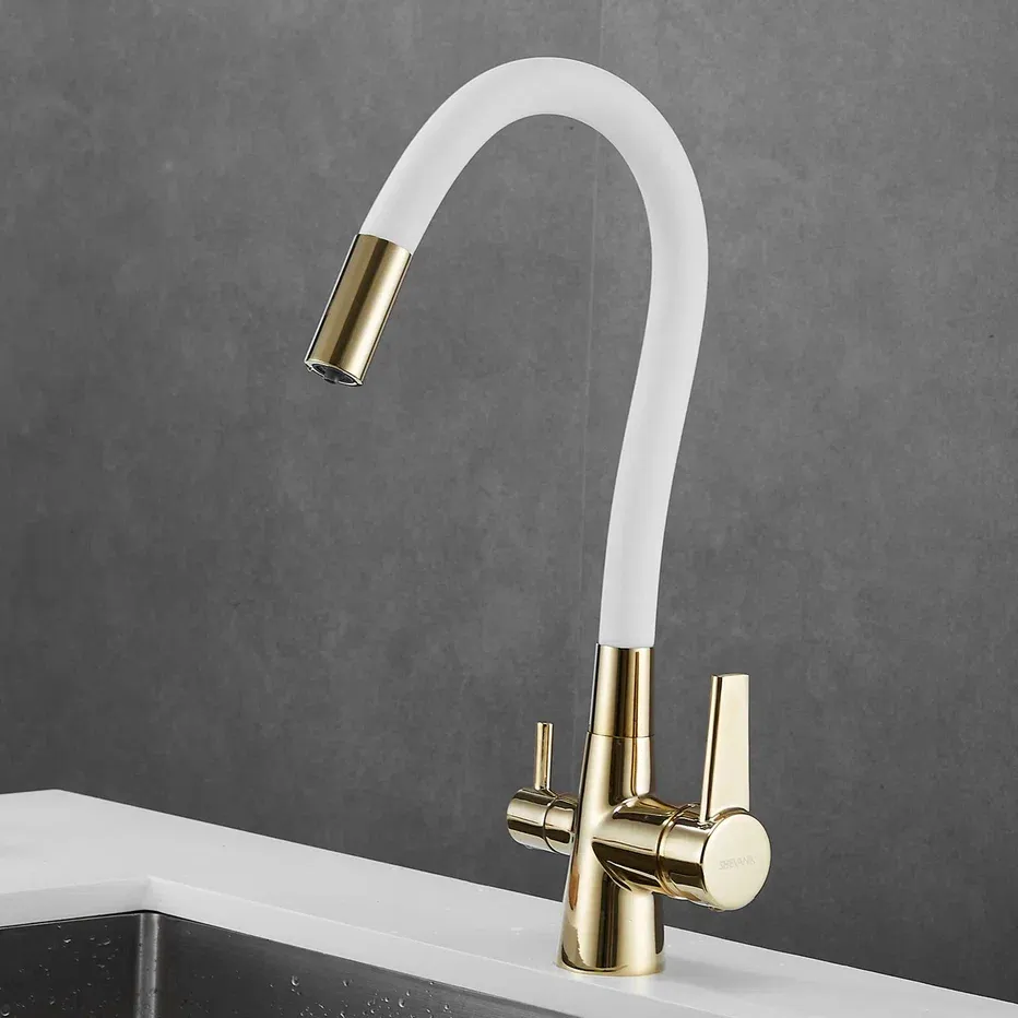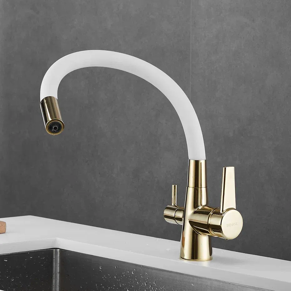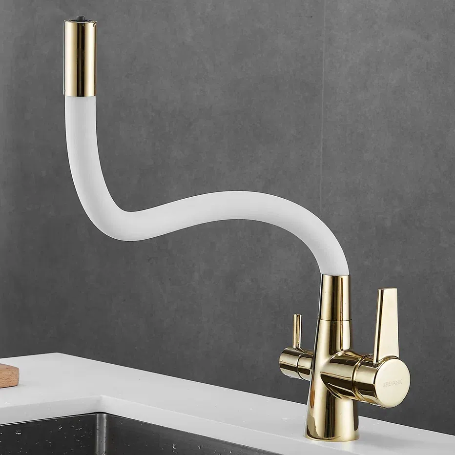 Смеситель для кухни Shevanik S668E с подключением фильтра золото/белый