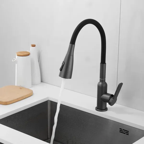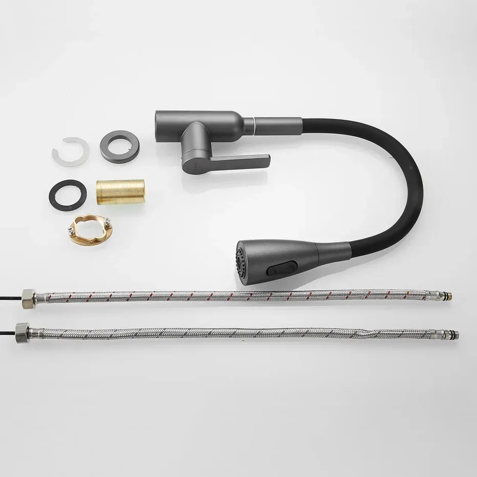 Смеситель для кухни с гибким изливом Shevanik S843T-3, оружейная сталь/черный.Управление: рычажное.Вращение излива: да.Выдвижной излив: нет.Гибкий излив: да.Высота:45.