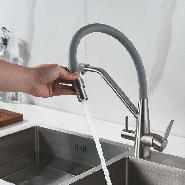 Одним из ключевых преимуществ смесителя Rose является возможность подключения фильтра для воды. Теперь у вас всегда будет доступ к чистой и свежей воде прямо из вашей мойки. Дополнительный излив служит не только для подачи фильтрованной воды, но и как держатель для гибкого излива, когда тот не используется, что добавляет удобства в повседневном использовании.