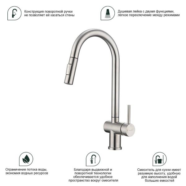 Смеситель для кухни Splenka S204.49.05 с выдвижным изливом сатин купить