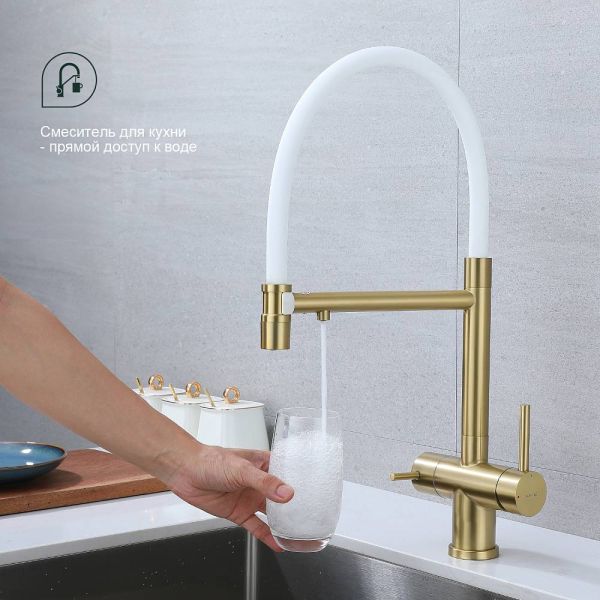 Смеситель для кухни Splenka S70.63.03 с подключением фильтра золотой сатин