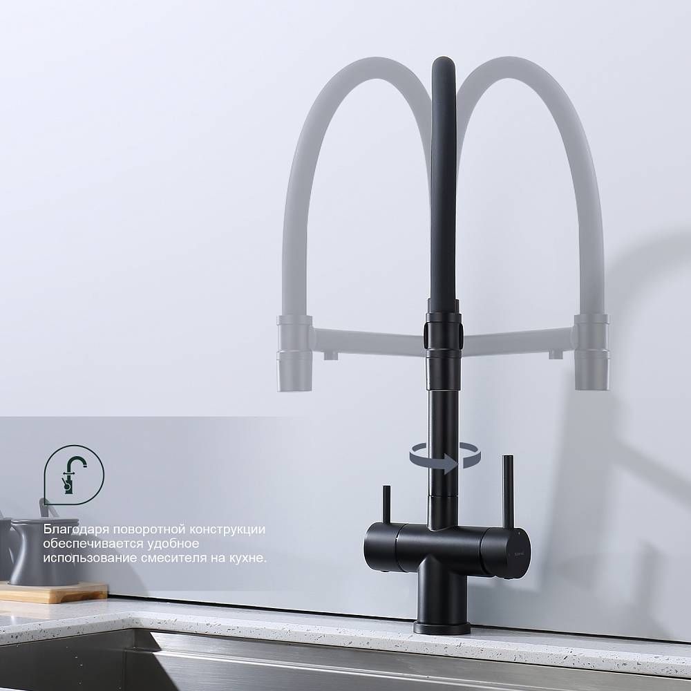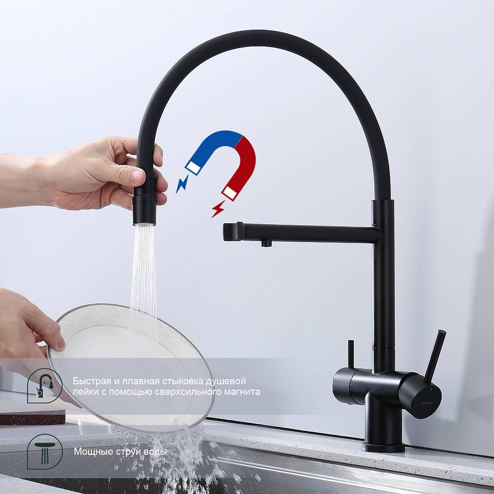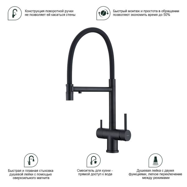 Смеситель для кухни Splenka S70.63.06 с подключением фильтра чёрный купить