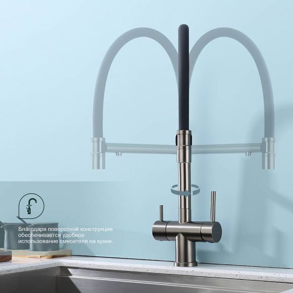 Смеситель для кухни Splenka S70.63.09 с подключением фильтра графит