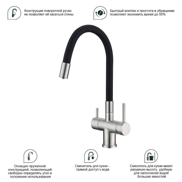 Смеситель для кухни Splenka S70.64.05 с подключением фильтра сатин