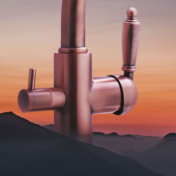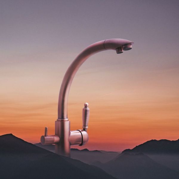 Смеситель для кухни с каналом для подключения фильтра Излив с поворотом 360 градусов.Изолированный отдельный канал для фильтрованной воды.Керамический картридж Sedal.Аэратор Neoperl.Гибкая подводка SoftPEX.Гигиенически стабильная латунь с высоким содержанием меди.Цвет: медь