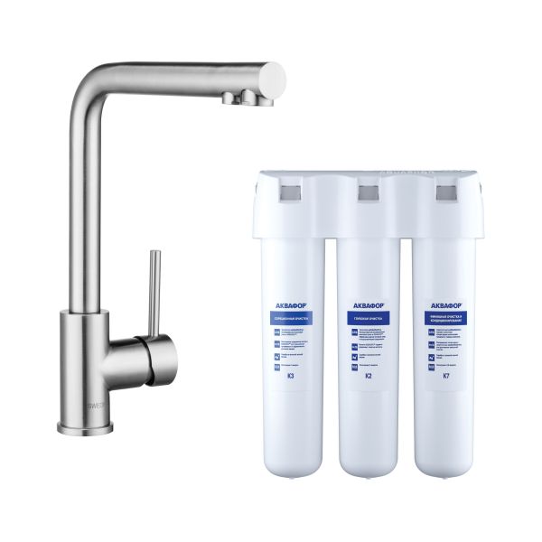 Смеситель для кухни Swedbe Selene Plus K8540K в комплекте с фильтром Аквафор Кристалл нержавеющая сталь