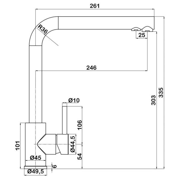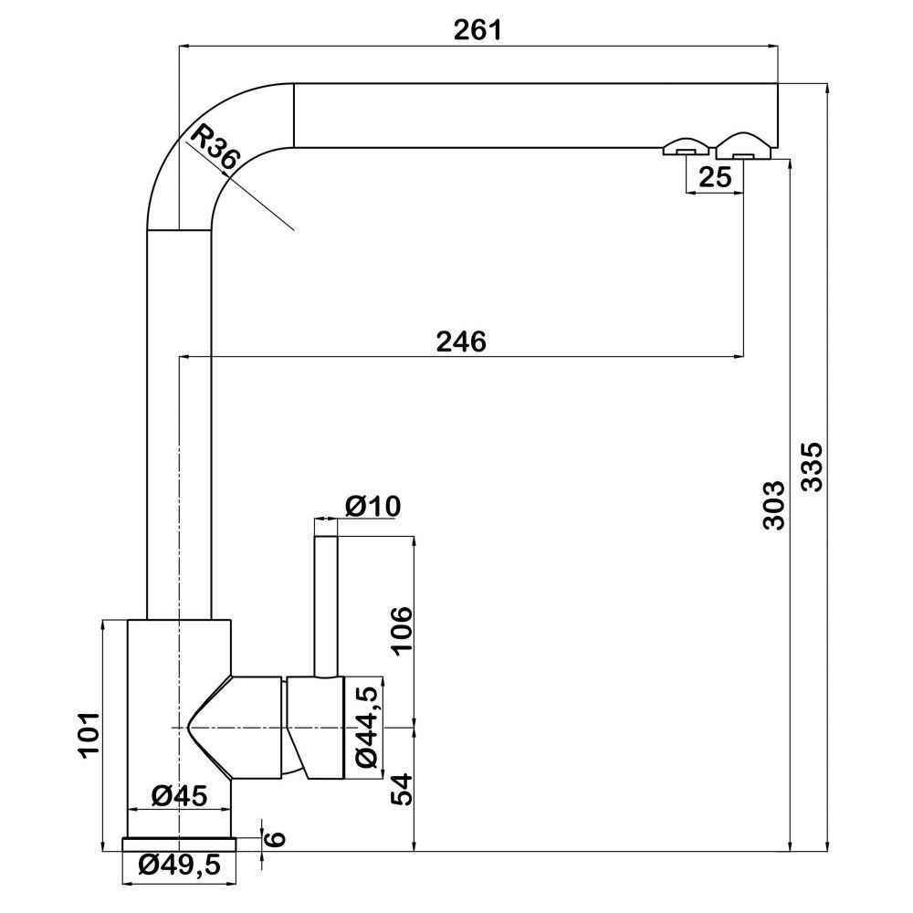• Высота смесителя: