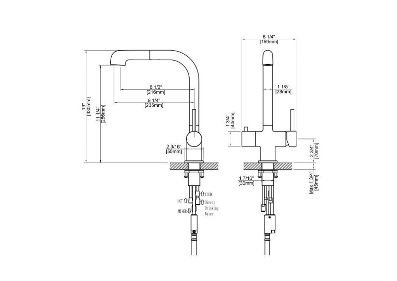 • Выдвижной излив: