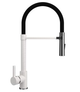 Смеситель для кухни Ulgran Classic U-024-341 с высоким гибким изливом ультра-белый