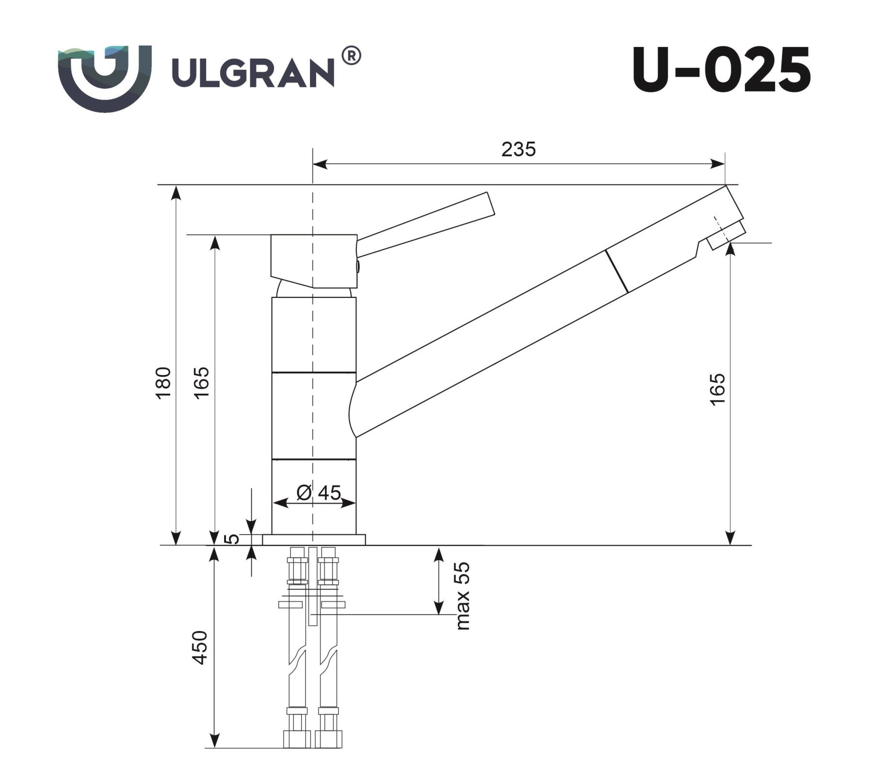 ULGRAN U-025 – удобный классический кухонный смеситель с низким поворотным изливом. Ма... Подробнее