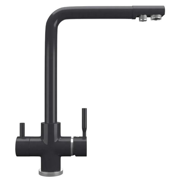 ULGRAN Quartz UQ-016 - высокоэргономичный кухонный смеситель с дополнительным краном для подключения фильтрованной воды, оснащенный кран-буксой с керамическими пластинами. Реализован тройной подвод воды через один излив: холодная, горячая и фильтрованная. Переход с одного подвода на другой производится поворотом рычага. Набор для соединения с фильтром входит в комплект . Система фильтрации приобретается дополнительно и монтируется под мойку, специальный индикатор сообщает о необходимости замены картриджа. Материал корпуса выполнен из высококачественной латуни, а окрашивание под "искусственный камень" в цвет мойки ULGRAN Quart выполняется на собственном производстве, что позволяет идеально попасть в фирменный цвет ULGRAN Quart. В качестве керамического картриджа используется известный бренд Wanhai диаметром 35 мм с высокой пропускной способностью в 500 тысяч циклов "открывания-закрывания". На подвижные части картриджа Wanhai нанесена специальная невымываемая силиконовая смазка, а керамические пластины изготовлены из 96% оксида алюминия, что, в сочетании с высоким качеством шлифовки обеспечивает долговечность, надежность, плавность хода рукоятки. Смеситель оборудован съемным пластиковым аэратором для экономии воды и поворотным изливом на 360 градусов. В комплектацию входят: керамический картридж Wanhai, гибкая подводка, комплект крепежных элементов, кран-букса с керамическими пластинами для дополнительного излива для фильтрованной воды, набор для подсоединения фильтра питьевой воды (гибкая подводка + переходник-цанга), технический паспорт и гарантийный талон. Заводская гарантия составляет 3 года на материал корпуса, 1 год на комплектующие к смесителю и 1 год на материал покрытия.МОЖНО